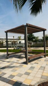 The client sought a modern, low-maintenance pergola solution that could withstand Abu Dhabi’s climate without compromising on visual appeal. The structure needed to integrate seamlessly with the existing landscape and villa design, delivering both functionality and refined elegance.