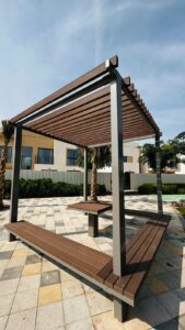 We managed the project end to end, beginning with design coordination to ensure alignment with architectural drawings and site conditions. Custom fabrication of the WPC pergola was carried out using high-quality materials selected for their weather resistance, structural stability, and long-term performance.